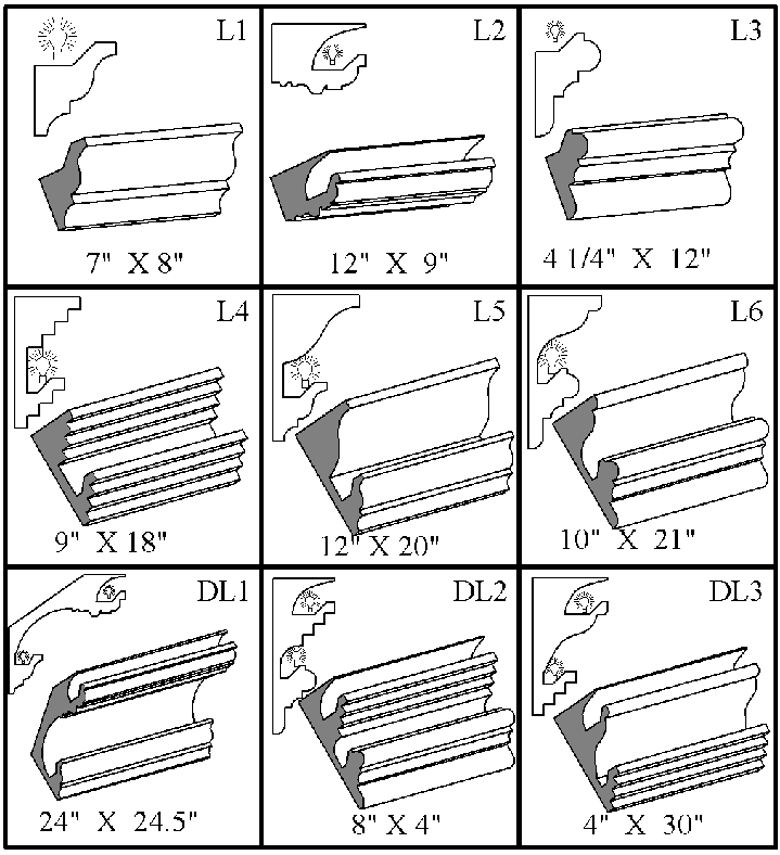 ArchFoam Sills Cornices Caps Bands Various P Shapes Indirect Lighting Decorations Models Shapes - Indirect Lighting Shapes